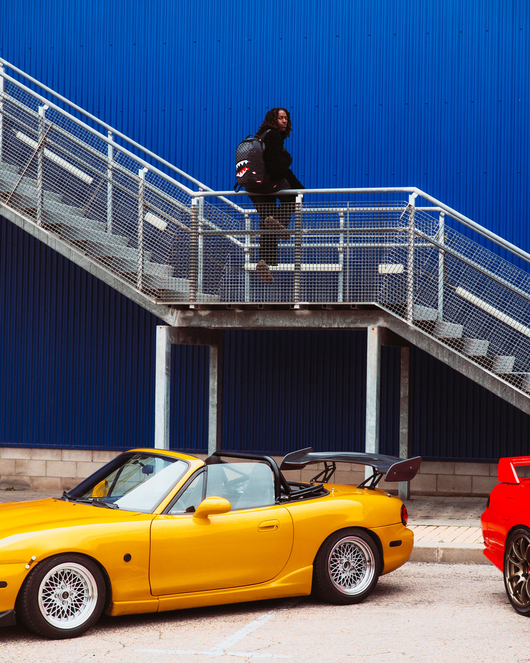 Dimensions: 18" x 6" x 11.5" • Front zipper pocket • Side pockets • Zippered Stash pocket • Separate velour sunglass compartment • Ergonomic mesh back padding • Adjustable Straps for custom sizing • Gold zippers with metal hardware • Metal "Sprayground Authentic" badge • Slide through back sleeve connects to carry-on luggage to free your hands