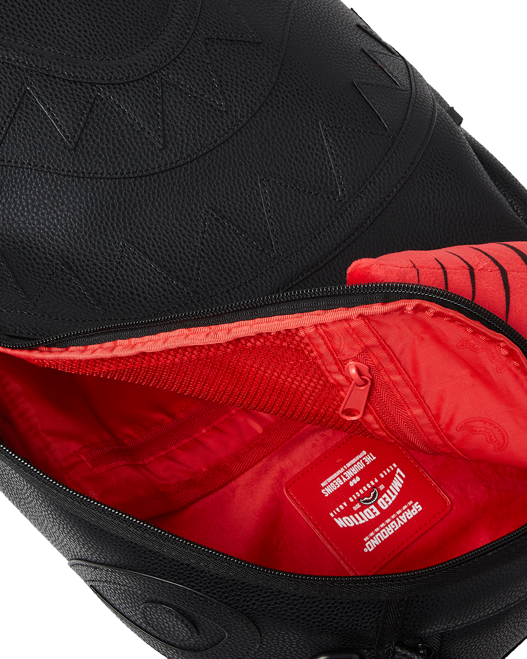 Dimensions: 18" x 6" x 11.5" • Front zipper pocket • Side pockets • Zippered Stash pocket • Separate velour sunglass compartment • Ergonomic mesh back padding • Adjustable Straps for custom sizing • Gold zippers with metal hardware • Metal "Sprayground Authentic" badge • Slide through back sleeve connects to carry-on luggage to free your hands